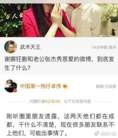 话说那天,张杰在微博上突然发布了一条消息,瞬间吸引了无数网友的目光。他不仅爆料了一些娱乐圈的内幕,还提到了一些明星的私生活。这下可好,网友们纷纷猜测,这背后到底隐藏着怎样的故事呢?